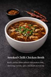 Rustic chicken broth infused with smoked chilli, delivering warmth, spice, and depth in every sip.