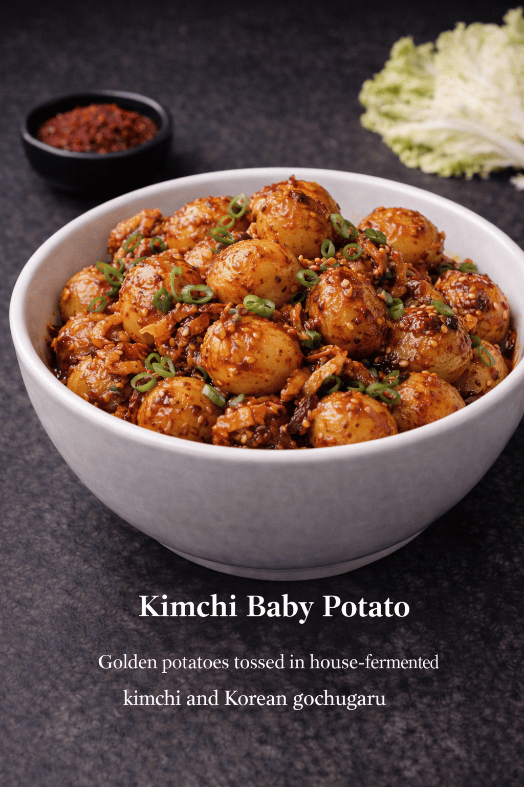 Baby potatoes tossed in house-fermented kimchi and Korean gochujang.